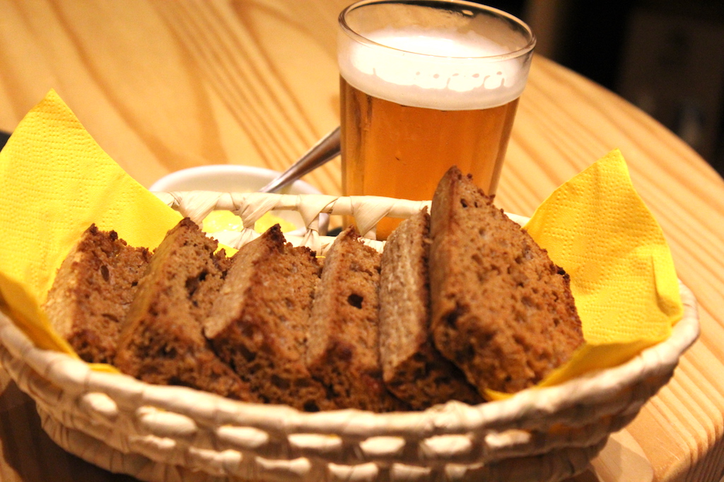 Começo – As fatias de pão de cevada e manteiga, bem fofinhas, representam às boas vindas da casa.