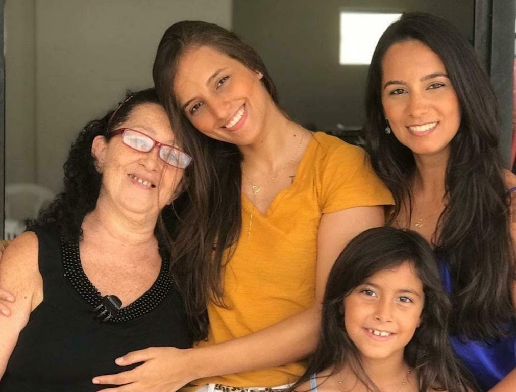 Nancy com a filha Tallita (blusa azul) e as netas Thayná e Lis, apoio essencial na vida e na pequena empresa de salgados e doces de festa