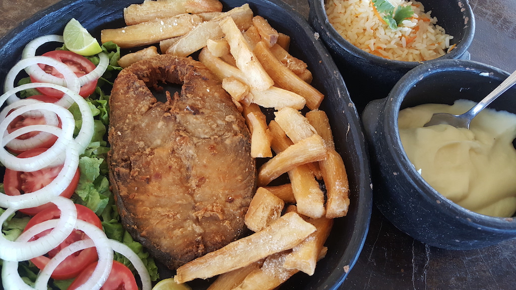 Continuo fã do peixe frito, ele vem agraciado com arroz de cenoura, macaxeira frita e purê de batata, daqueles fofinhos de mãe. Simplicidade e perfeição até na forma da apresentação dos pratos.