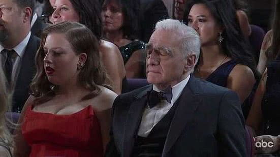 Porém, o que chamou atenção mesmo foi Martin Scorsese com os olhos fechados dando a entender que estava tirando um breve cochilo. A internet não perdoou e logo viralizou o meme do cineasta.