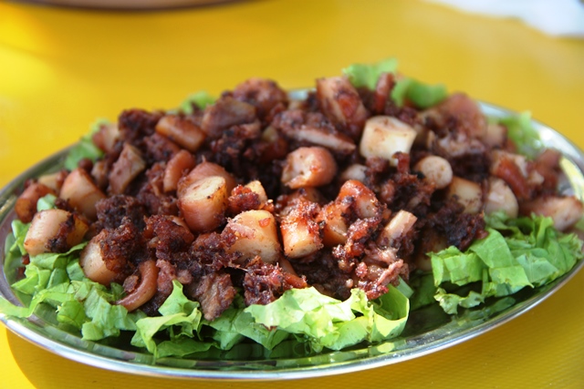 Depois do polvo foi a vez da pilombeta. Peixe de água doce, pequeno e bem carnudo – só precisa de pingos de limão.O caldinho de feijoada, apesar de não vir das águas, merece também todo o apreço.