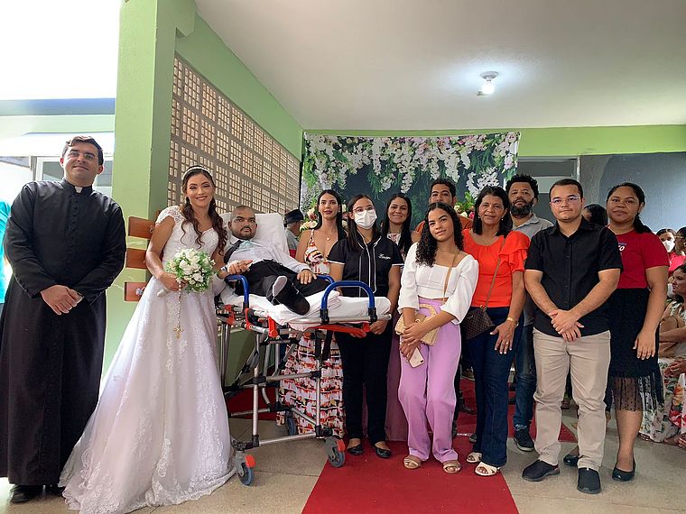 Uma cena comovente aconteceu na manhã desta sexta-feira, 24, no Hospital Ênio Ricardo Gomes (HMERG), em São José da Tapera, no Sertão de Alagoas. O paciente Cleilson Correia da Silva Monteiro, internado que está internado na unidade se recuperando de um osteossarcoma (câncer ósseo), decidiu selar seu casamento com a noiva, Verônica dos Anjos Lima, depois de longos quatro anos.