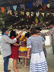 Na tarde de hoje, enfim, os usuários, puderam participar do arraiá. A quadrilha, mesmo improvisada, aconteceu na Praça Chiquinho e seguiu com passos certeiros, puxada pelo servidor João Neto.