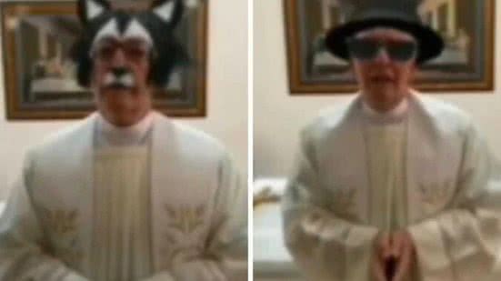 No vídeo viral, o padre conduzia a celebração de casa, mas, sem notar, ativa uma sequência de filtros enquanto ele profere as orações. São filtros de gatinho, de corredor e de chapéu com óculos escuros, que contrastam com a seriedade da missa.