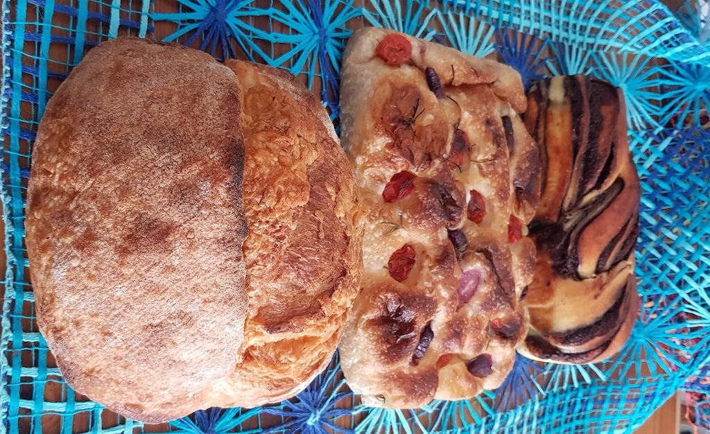 Pão italiano, focaccia e brioche de chocolate da Iamo Bakery