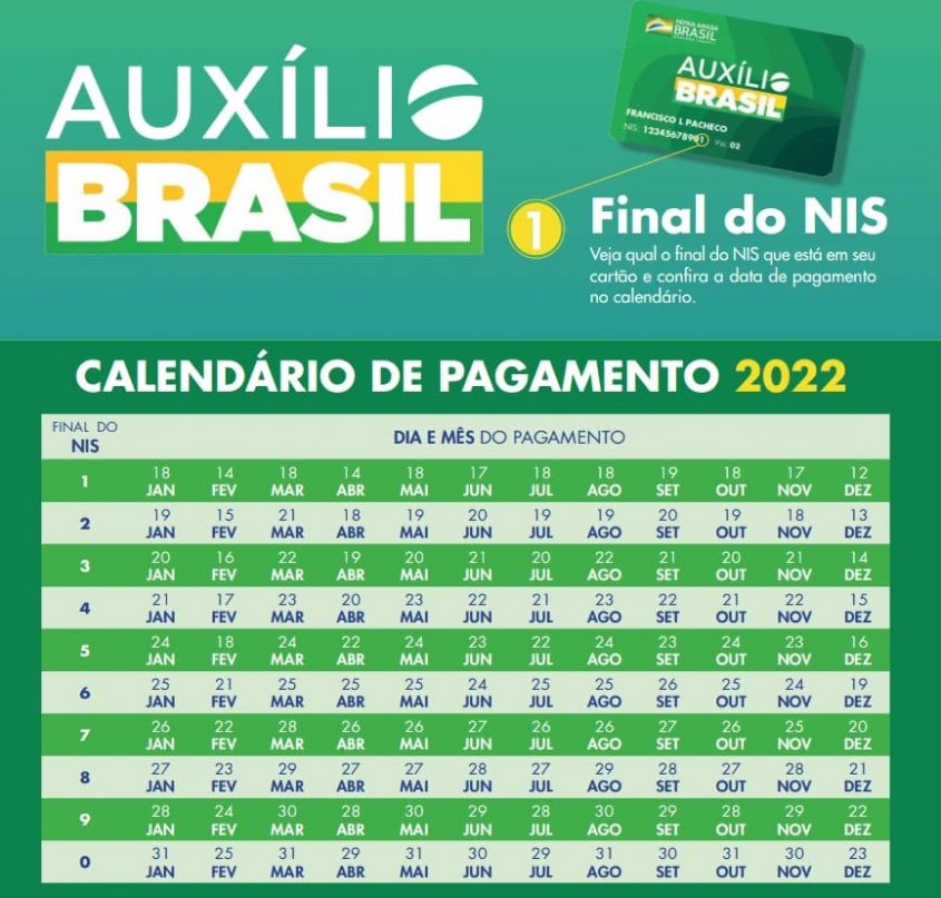 Na quinta-feira (17), o calendário de pagamento do Programa Auxílio Brasil, do mês de novembro, será iniciado para os beneficiários com Número de Identificação Social (NIS) terminado em 1. Na sexta-feira (18) recebem aqueles com NIS final 2, e na segunda (21), os com NIS, final 3. Os pagamentos seguem até o dia 30.