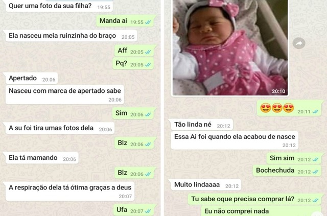Sogro depois teria assumido por WhatsApp ao genro que estava mentindo e obrigou a filha a entregar o bebê — Foto: Arquivo pessoal