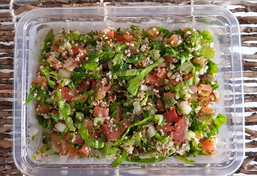 Tabule: grão de trigo integral com alface, tomate e pepino