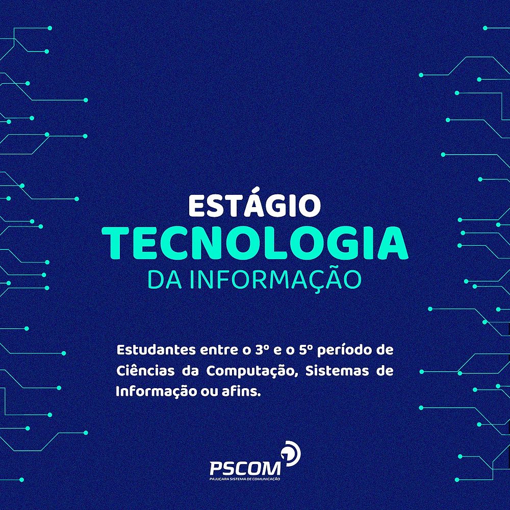 O Pajuçara Sistema de Comunicação (PSCOM) abriu nesta terça-feira (28), inscrições para processos seletivos de estágios na área técnica e também em Tecnologia da Informação (TI). As inscrições seguem até a próxima segunda-feira (04/10) diretamente no Linkedin do PSCOM. Para se candidatar é só clicar em vagas, não sendo necessário anexar currículo, apenas que o perfil esteja completo/atualizado.