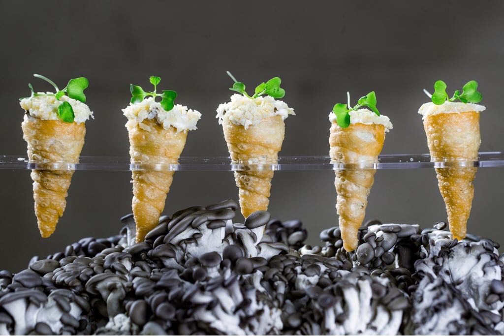 Restaurante Sur, dos chefs Serginho Jucá e Felipe Lacet: canudinho de cogumelos trufados, e a sobremesa bolo molhado de doce de leite salgado, azeite e cookies.