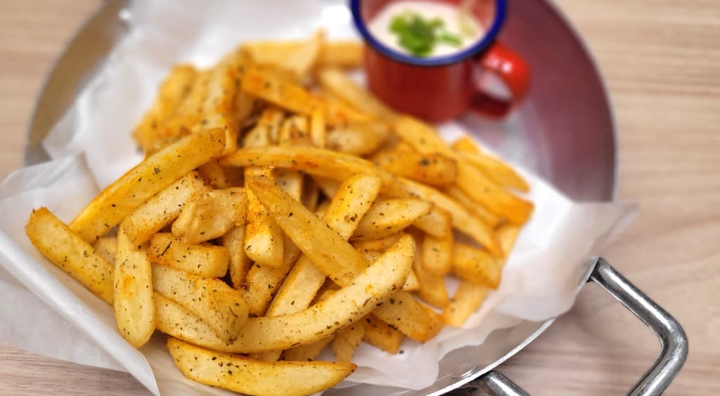 Para compartilhar: batata frita é temperada com ervas, páprica e molho de maionese de queijo