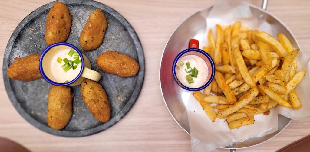 Bolinho de bacalhau e batata frita temperada