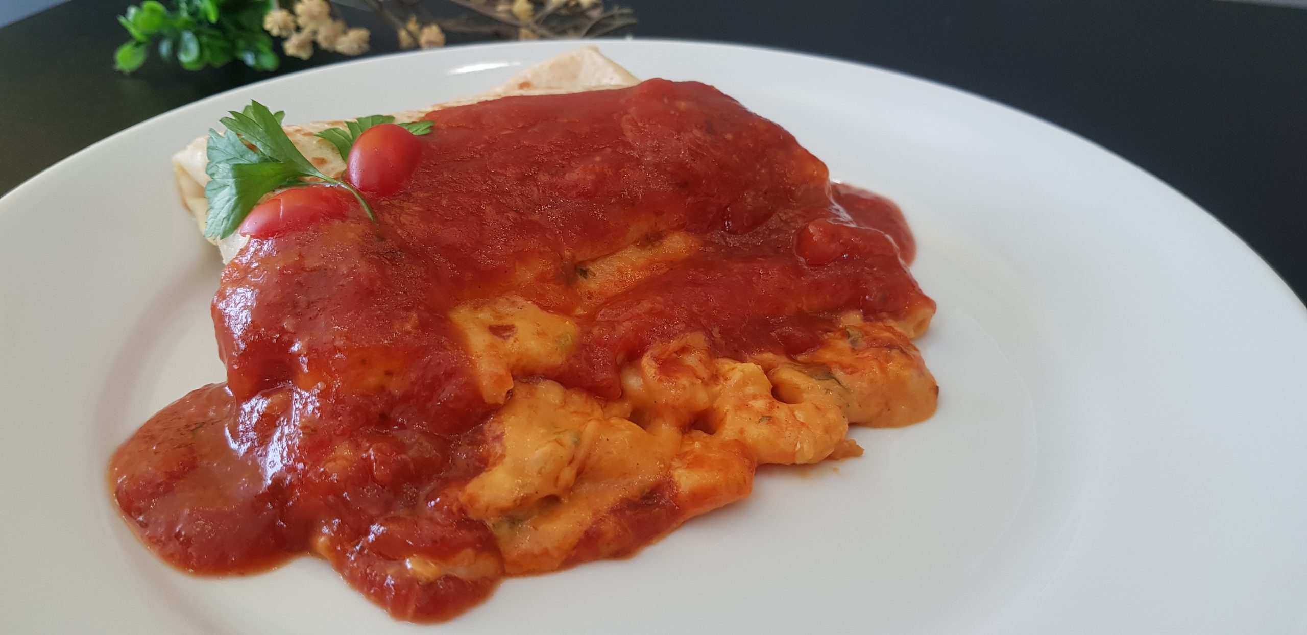 Panqueca com recheio de chiclete com camarão