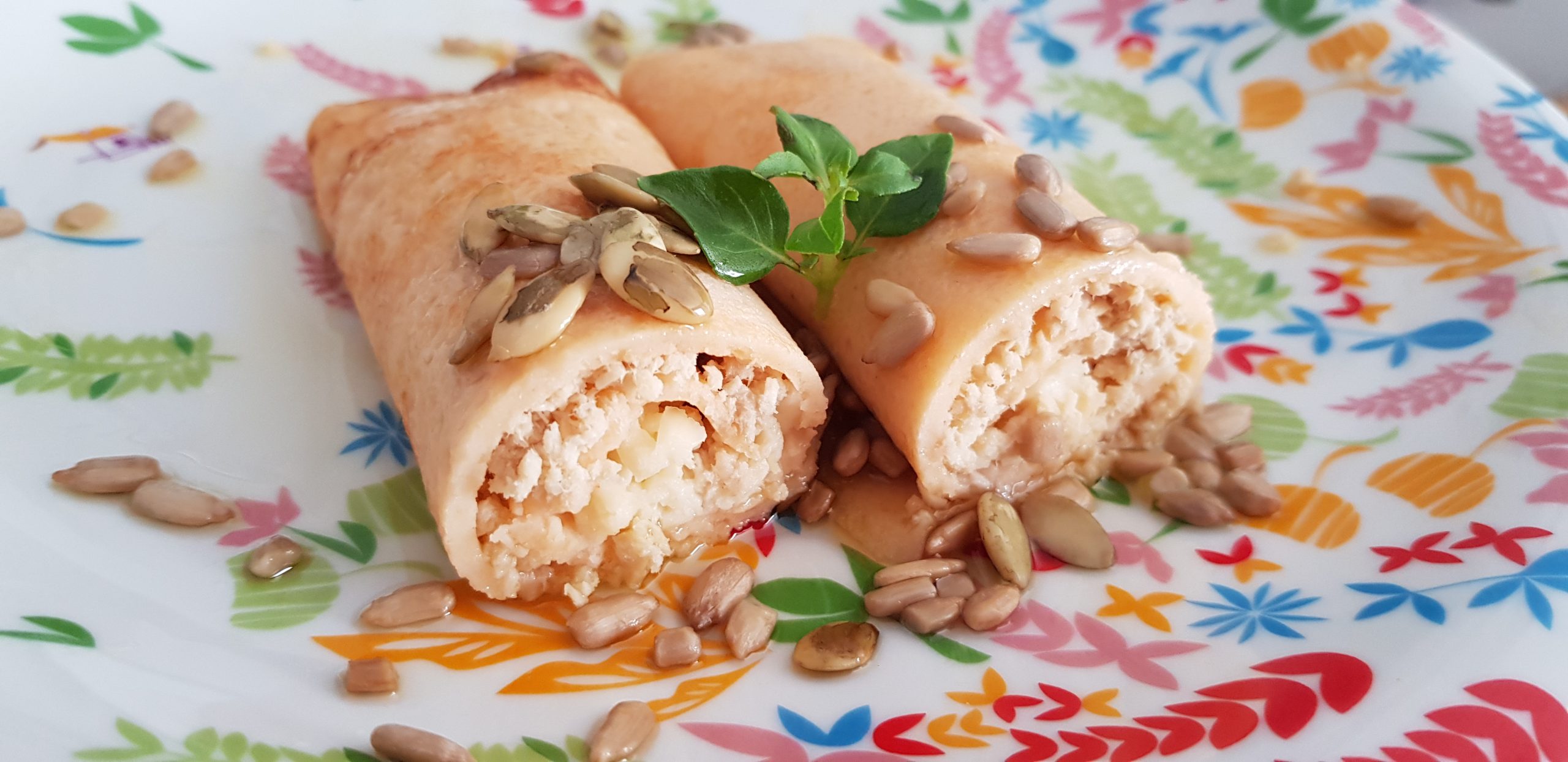 No recheio, gosto da combinação frango triturado com queijo coalho ralado. Já o molho, pode ser aquele clássico de tomate ou um toque de azeite com sementes de abóbora e girassol, que eu adoro.