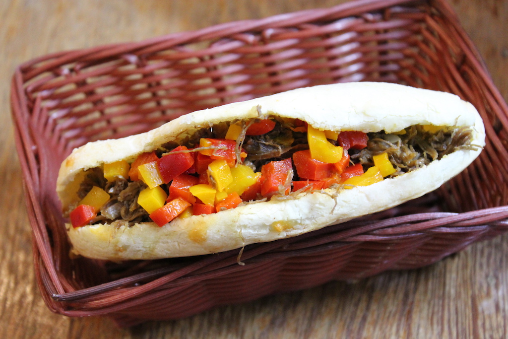 Carne de panela ao vinho com pimentões coloridos é um do food truck Trem de Minas