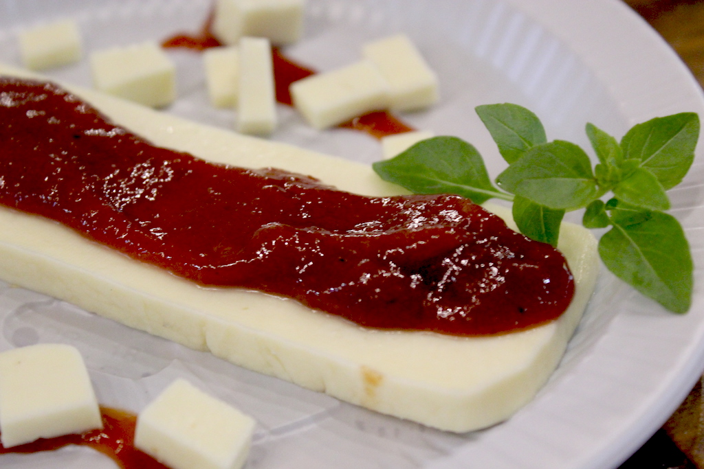 Queijo coalho com calda cremosa de goiabada cascão de Minas Gerais