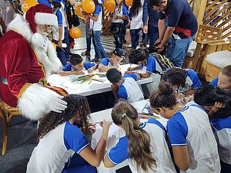 Na abertura dos portões, os pequenos já foram surpreendidos pelo personagem símbolo do Natal de braços abertos dando as boas-vindas aos visitantes da feira. O bom velhinho abraçou as crianças uma a uma e convidou-as a escreverem suas cartinhas com os mais sinceros pedidos para esta linda época do ano.