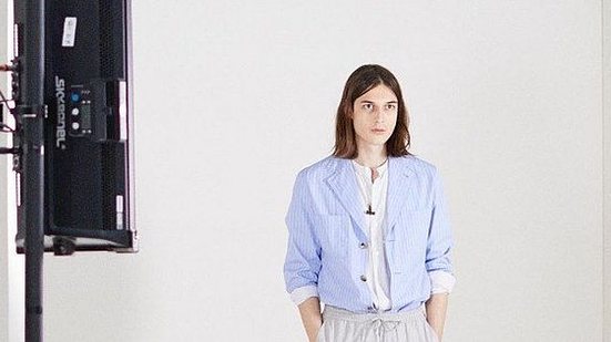 Nas cenas, que foram compartilhadas no Instagram, os câmeras e técnicos ganham destaque e dividem a atenção com os modelos. A estilista da moda masculina da marca, Véronique Nichanian, também aparece em ação, ajustando o blazer azul-céu de um modelo.