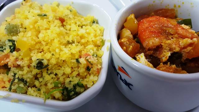 Extra: No último dia do curso de Cozinha Básica, o aluno Fabio Bandeira fez moqueca de ovos com camarão seco e para acompanhar farofinha de cuscuz