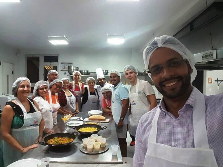 O professor de Cozinha Básica foi o professor Cícero Harri que, logo no primeiro momento, mostrou a importante da disciplina na cozinha. Ao término da aula, tudo ficou limpo e arrumado. Coisa simples, mas necessária, de como fazer o “mise en place”, ou, traduzindo do francês, deixar todos ingredientes e elementos da receita prontinhos já no jeito para que você execute corretamente.