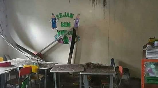 Segundo a prefeitura, o material que desabou foi o forro de PVC do teto de uma das salas. Após a queda, a sala ficou suja de poeira e cheia de ratos.