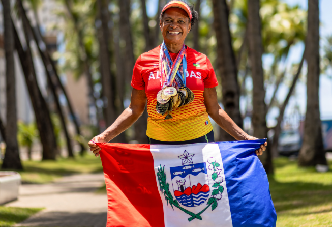 “Mulher, negra, idosa, analfabeta e vinda do interior. Meu destino poderia ter sido outro. Mas, quando enfrentei a depressão aos 60 anos, encontrei na corrida um novo propósito. O esporte salvou minha vida. Hoje, represento Alagoas de norte a sul. Cada competição é uma superação, e o maior presente é saber que inspiro outras pessoas”, emociona-se Maria do Carmo, a “Carminha”, esportista do atletismo há sete anos.