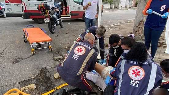O Serviço de Atendimento Móvel de Urgência (Samu) informou que uma equipe de socorristas foi deslocada para o bairro às 10h e encontrou a mulher de 48 anos com ferimentos. Ela estava com um corte profundo entre a coxa e a nádega direita, e ficou deitada na pista durante o atendimento.