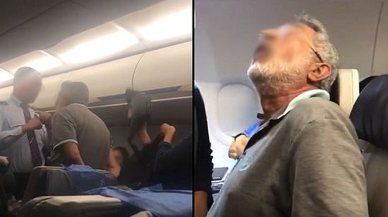 Vídeos divulgados na internet mostram o momento da contenção, o passageiro de barba e cabelos grisalhos questiona os comissários sobre o que ele teria feito para ser algemado. "Por que [a algema]? Sob a acusação de que? Qual a acusação?"