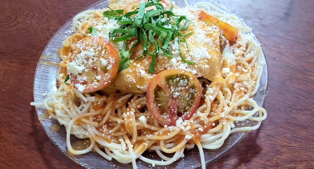Agora as macarronadas não são italianas e tem o DNA alagoano, molho de tomate caseiro e queijo parmesão. As mais idolatradas são a parmegiana e a de leitão, que realmente são boas, agora, eu fiquei apaixonada pela batizada de A Moda da Casa, com omelete (ovo, queijo parmesão, presunto e batata palha), é perfeita e ainda vem um bife à milanesa.