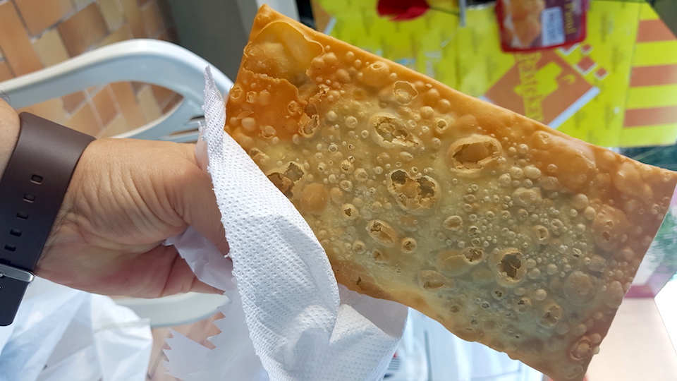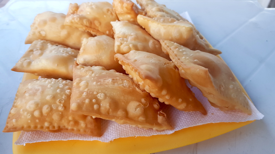 Monica Danielle é danada. Acorda às 6 horas para começar a produção dos pasteis da massa caseira, receita herdada do seu tio Adilson. Na hora de escolher o recheio até fiquei embaralhada. Como adoro o de carne com azeitonas, recorri a ajuda da Monica. Sua dica foi adicionar azeitona, ovo e palmito. A carne é bem enxuta e gostosa. “Todo dia a carne é moída no açougue”, diz a alagoana que é criteriosa na escolha dos produtos.