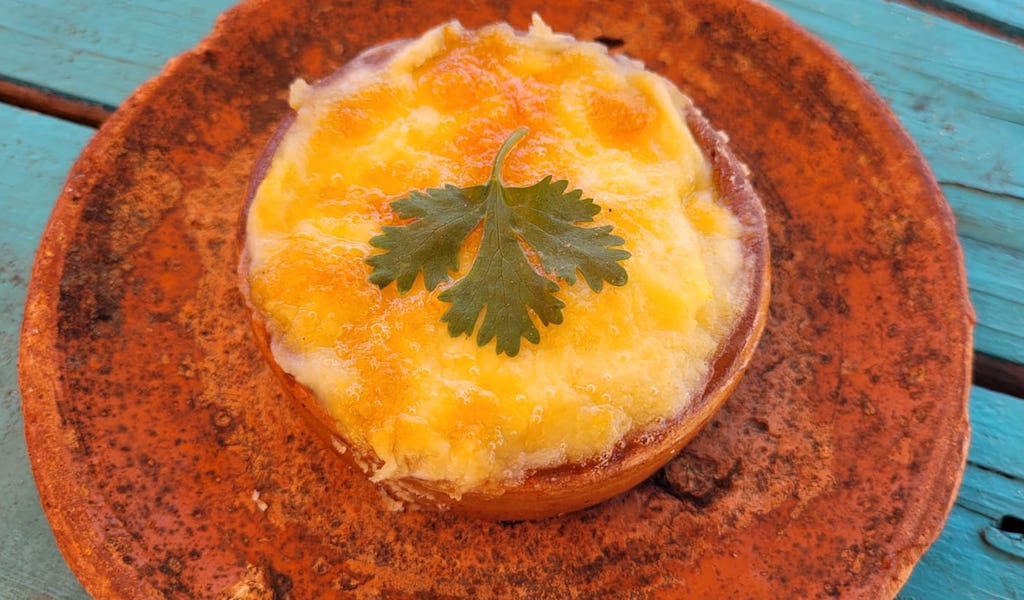 Casquinha de aratu misturada com purê de batata e gratinada com queijo