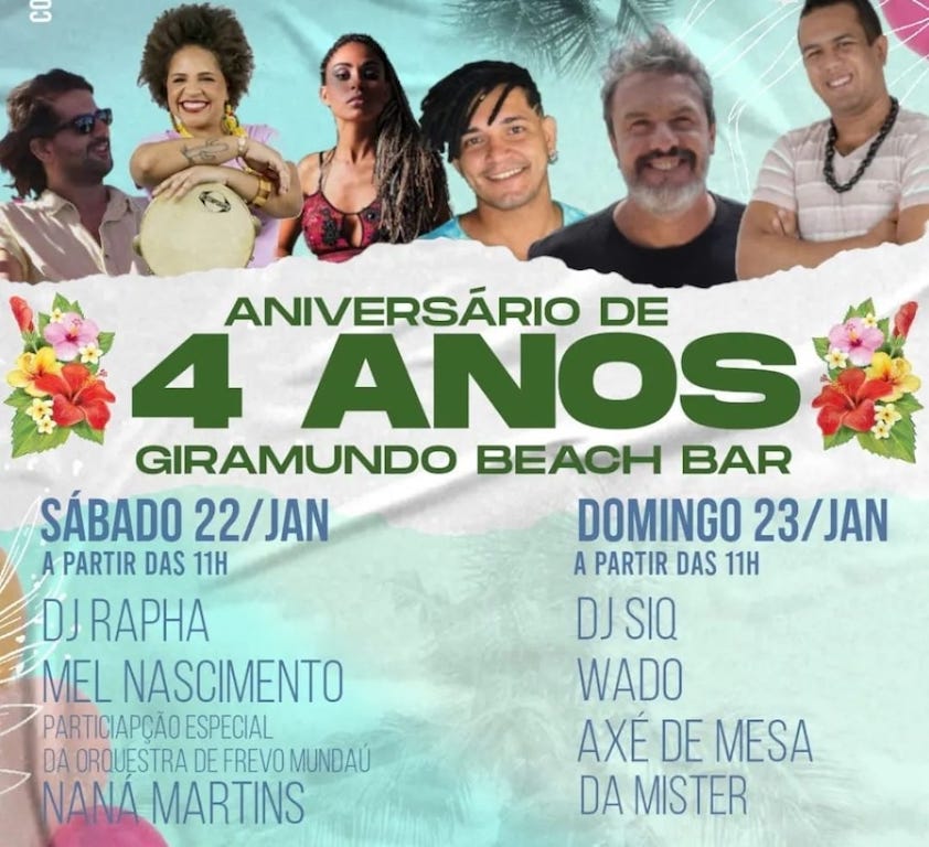 Sempre amei Garça Torta, litoral norte de Maceió, praia serena que na maré baixa os corais deixam tudo mais bonito, mas agora tem mais um motivo para visitarmos esse lugar, os pasteizinhos de aratu do Gira Mundo Beach Bar. São gostosinhos e tem mais, o bar celebra 4 anos com shows da boa música produzida em Alagoas, com apresentações de Wado, Mel Nascimento, Nana Martins, Orquestra de Frevo Mundaú, Axé de Mesa, Da Mister, DJ Rapha, e DJ SIK no próximo sábado e domingo, a partir das 11h.