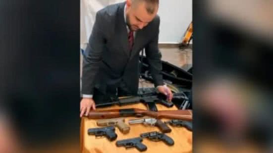 Um pastor de uma igreja evangélica de Curitiba, capital paranaense, aparece em vídeo publicado nas redes sociais benzendo um arsenal levado para o templo no último sábado (12) por um delegado de Polícia Civil.