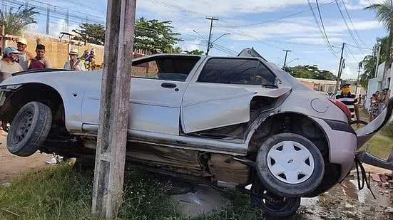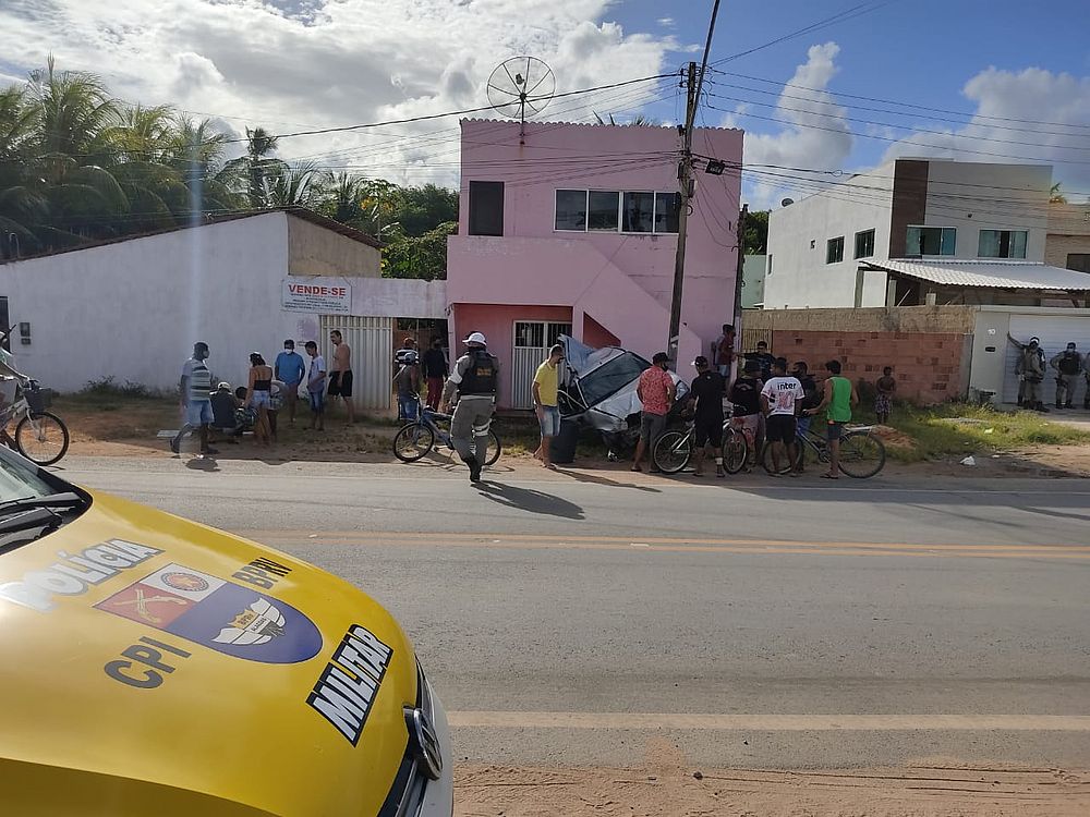 Após o atropelamento, o Ford Fiesta seguiu em velocidade, tombou e bateu no muro, vindo depois a atingir o poste. Os três passageiros também foram encaminhados à unidade saúde, porém o estado de saúde deles não foi divulgado.