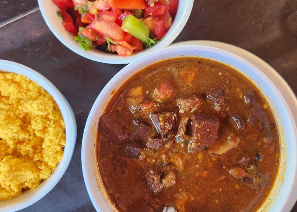 Anísio tem fama de frutos do mar, mas o sarapatel é bom com farofa e pimenta. Valei-me meu Deus, é o pecado da gula.
