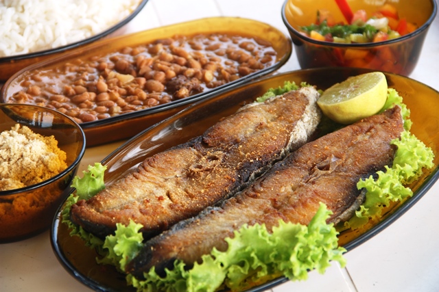 As peixadas são as estrelas do bar na Praia de Riacho Doce e, claro, a de pirão é imbatível. Mas, como adoro feijão com arroz e peixe frito, deixei de lado o pirão e investi no feijão caseiro que vem com o toque da pimenta de cheiro. No prato vem duas postas de Arabaiana, Cavala ou Dourado (bem sequinhos) – e o melhor de tudo: o peixe é comprado direto dos pescadores da região.