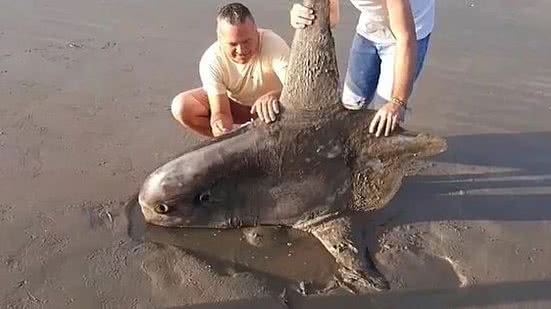 Moradores da região avistaram o peixe, que tem nome científico de Mola mola. Encalhado na areia, o animal morreu momentos depois.