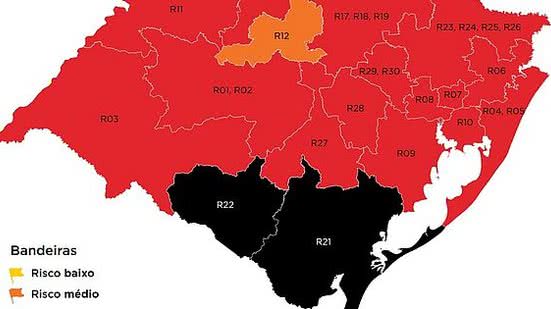 A constante redução de leitos de UTI livres e o aumento de casos de contágio e de internação por coronavírus resultaram na classificação. As demais regiões estão quase todas em bandeira vermelha, exceto Cruz Alta, que está em bandeira laranja.