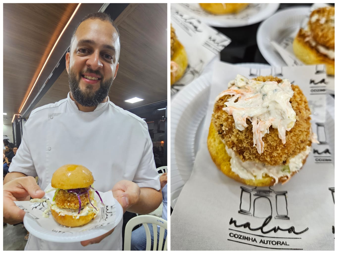 Já o chef Jonatas Moreira, do Akuaba, buscou a tradição penendense do Jacaré e o siri, ingredientes da cozinha do restaurante afro para a receita de moqueca com dendê e leite de coco. Super aprovada, teve participante que comeu três vezes, ou seja, o dendê não é pesado, é o saber dosa-lo na medida, e claro, Jonatas faz isso com muita maestria.