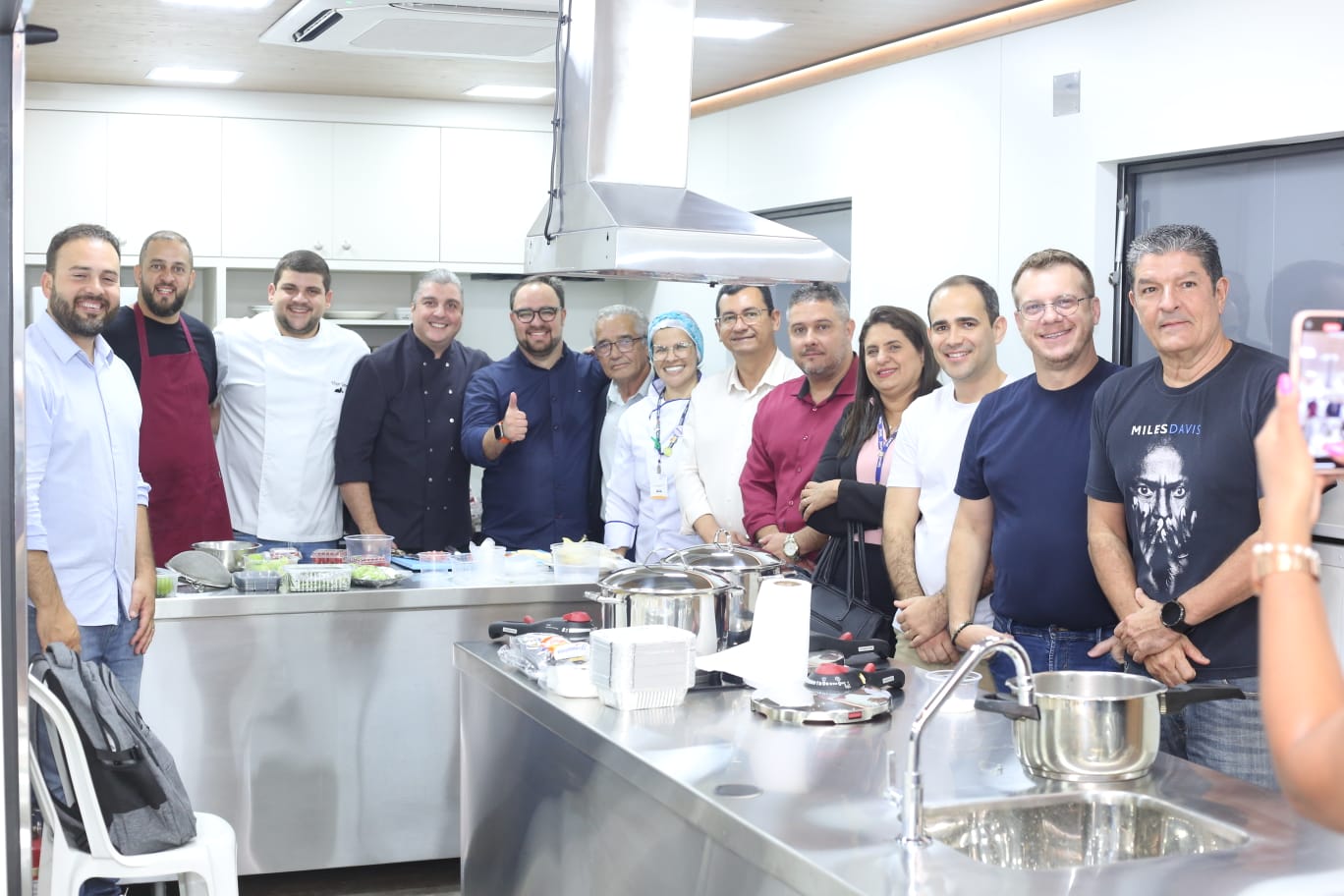 Serginho Jucá, do Sur, contou aos alunos a sua história com as Irmãs Rocha, em especial, a sua vó Yêda, sua inspiração na cozinha alagoana. Ele preparou o arrumadinho de camarão que agradou a todos.