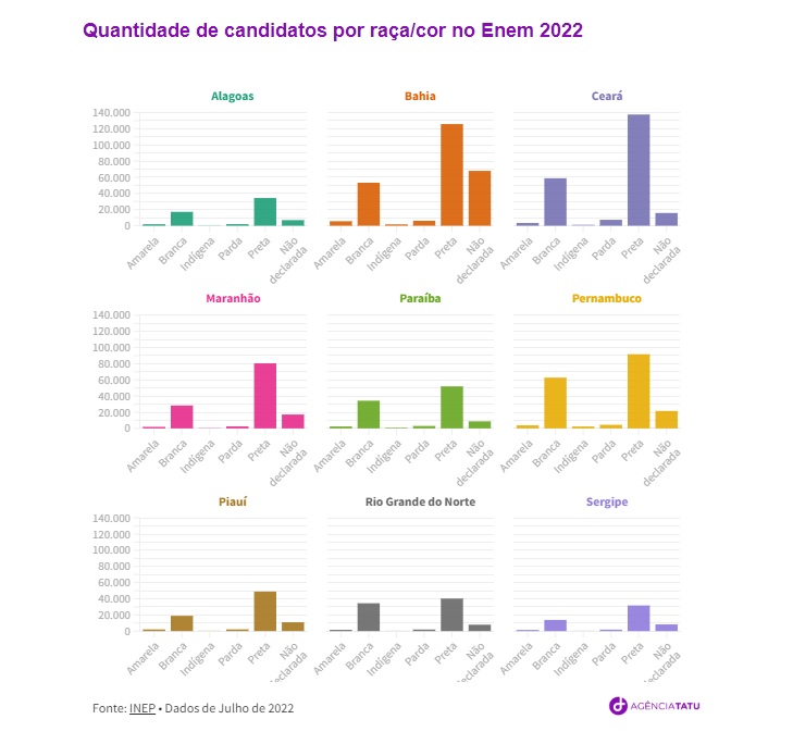 São 642.900 pessoas autodeclaradas pretas, isso corresponde a 53,8% dos candidatos da região. Após as pessoas pretas, a maior parcela é a de brancos, com 321.805 inscritos.