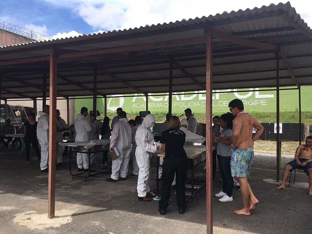 “No curso, assim como aconteceria em uma situação real, foi simulado um desastre com múltiplas vítimas e de grandes proporções, dividindo-se a atuação pericial no IML de campanha, na perícia de busca e recuperação de corpos e na análise do ambiente e dos vestígios para determinação da dinâmica e autoria.” Explicou o perito criminal Victor Portela.