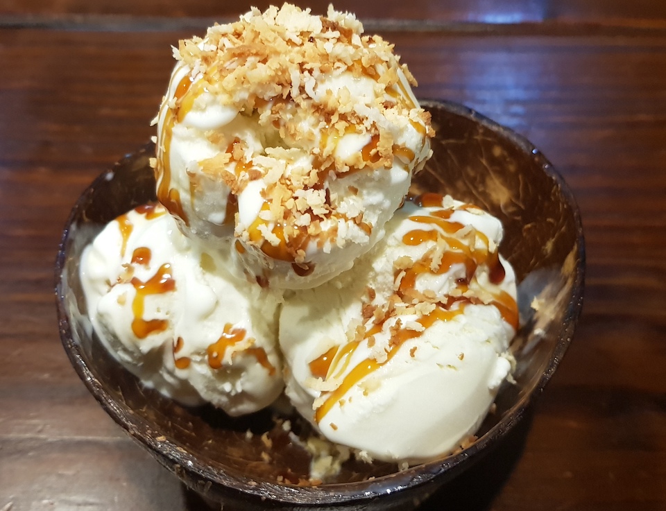 Nota 10: Sorvete de tapioca (Belo Monte) com farofa de coco e mel de engenho