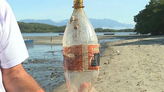 "Quando eu peguei essa garrafa, que puxei da lama, eu vi os bonequinhos. Estava perto da minha chefe e falei: 'ó o que achei, da Copa do Mundo, dos minicraques'. É uma garrafa que está dentro do mar já há bons anos", conta o pescador Rogério Antunes, mencionando os brinquedos colecionáveis que representavam os jogadores na campanha publicitária da Coca-Cola.