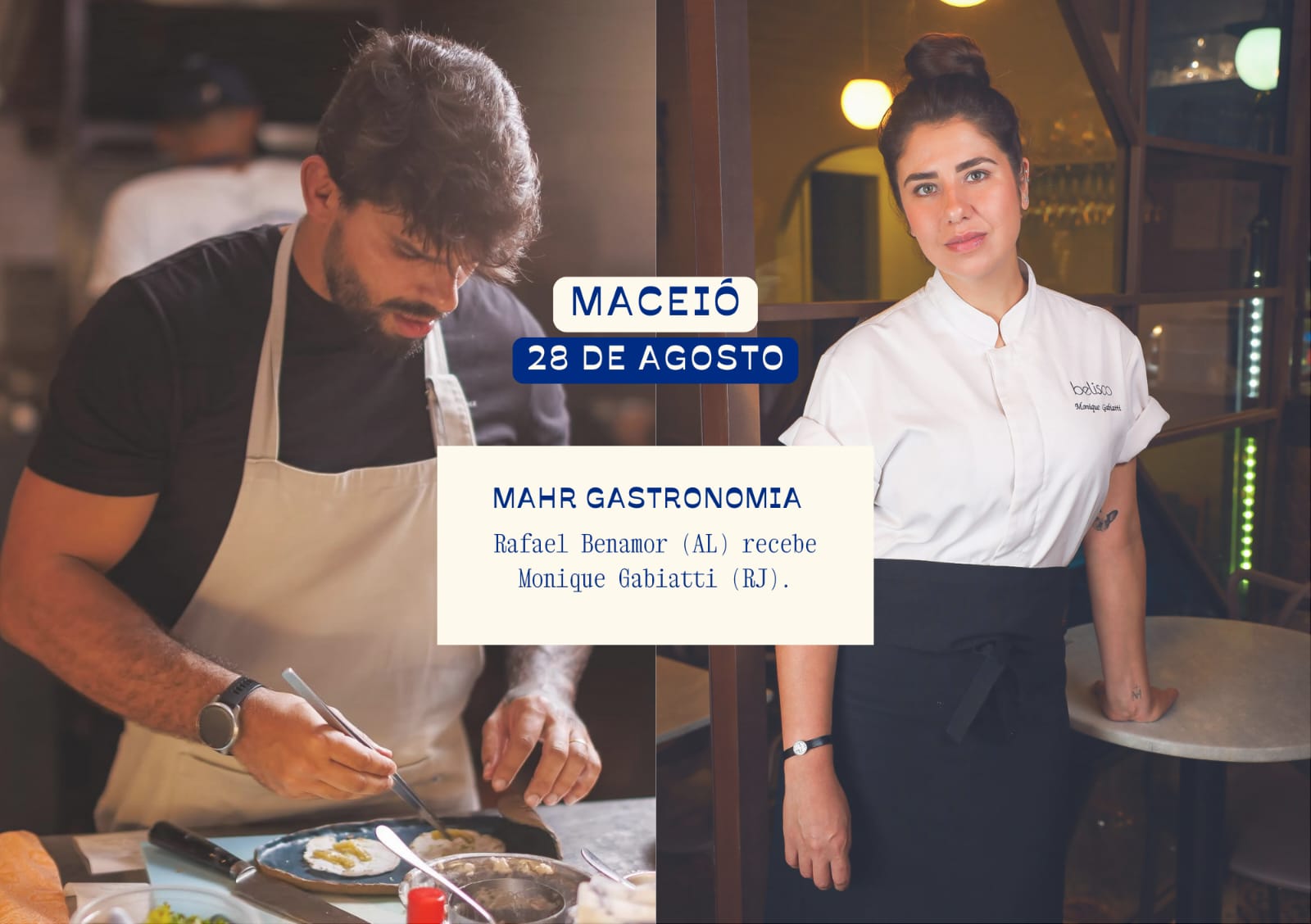 Mahr - quinta-feira (28), às 20h, o chef Rafael Benamor, do MAHR, recebe a chef Monique Gabiatti, do Polvo Marisqueria, Polvo Bar e Belisco