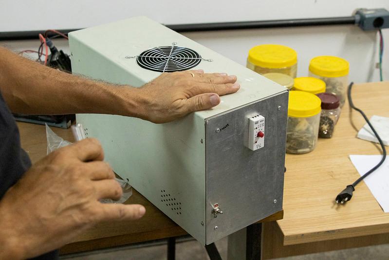 O ozonizador em teste na UFC fará a geração do ozônio a partir do próprio oxigênio presente no ar que circula nas salas de aula, realizando essa transformação por meio da aplicação de descargas elétricas. O protótipo estará pronto para uso até o fim deste mês de setembro. A ideia é que, em breve, sejam produzidos mais cinco exemplares desse aparelho. Os seis, então, serão disponibilizados para as três unidades acadêmicas do Campus do Pici: o Centro de Ciências, o Centro de Tecnologia e o Centro de Ciências Agrárias, conforme explica o Prof. Marcos Sasaki, de quem partiu a ideia do projeto.