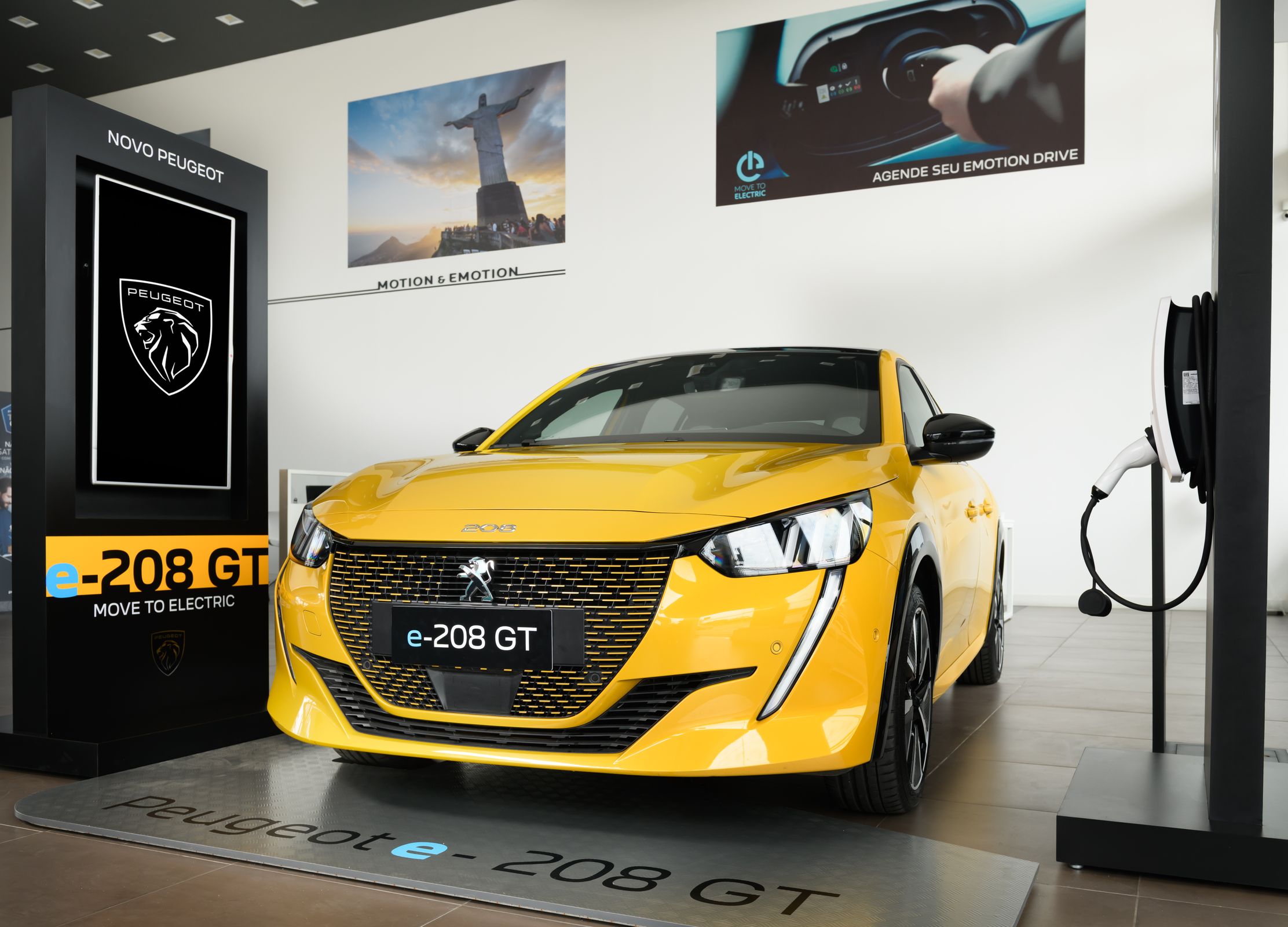 A Peugeot acaba de apresentar seu primeiro carro 100% elétrico à venda no Brasil: o PEUGEOT e-208 GT.