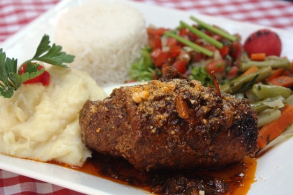 Clássico Prato Feito: galinha guisada com feijão caseiro com legumes, charque e calabresa, legumes cozidos…