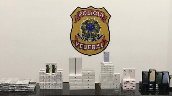 De acordo com a PF, os equipamentos estavam acondicionados em três malas. “Foram apreendidos 148 aparelhos eletrônicos, sendo 138 smartphones e 10 iPads, avaliados aproximadamente em R$ 600 mil”, informou.
