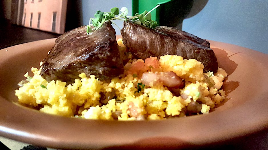 Cuscuz de Quenga Rica do Tamarineira Bar com bife de carne de sol